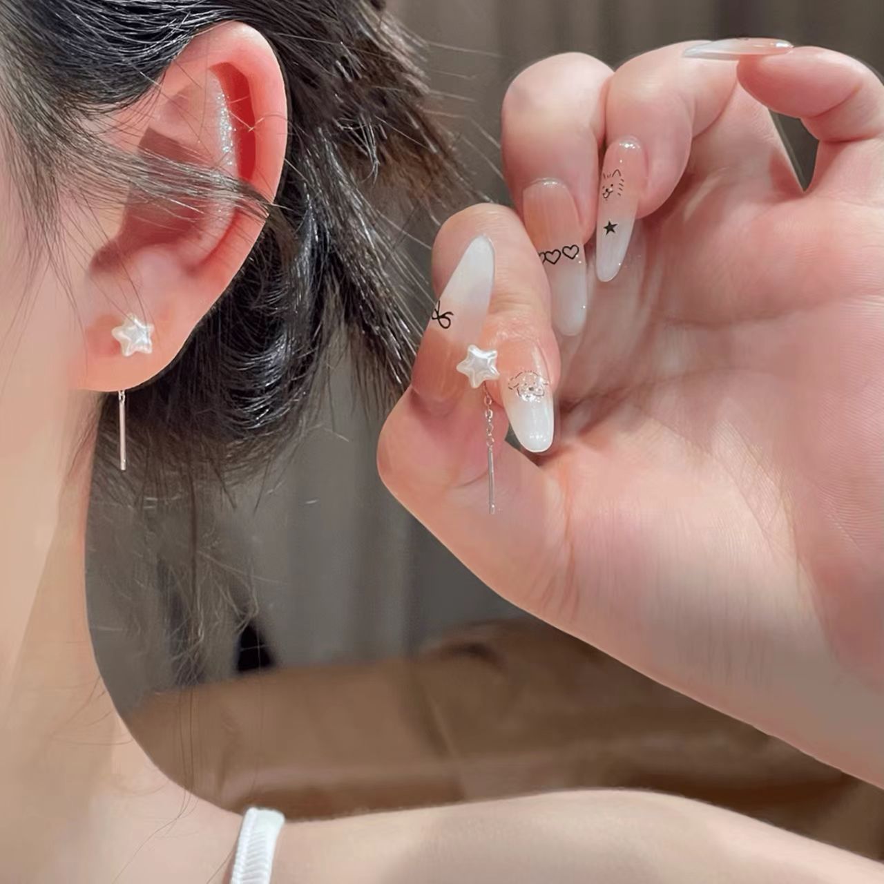 ニッチデザインパールスターイヤリングポートタッセルかわいいシンプルコンパクト気質通勤甘い