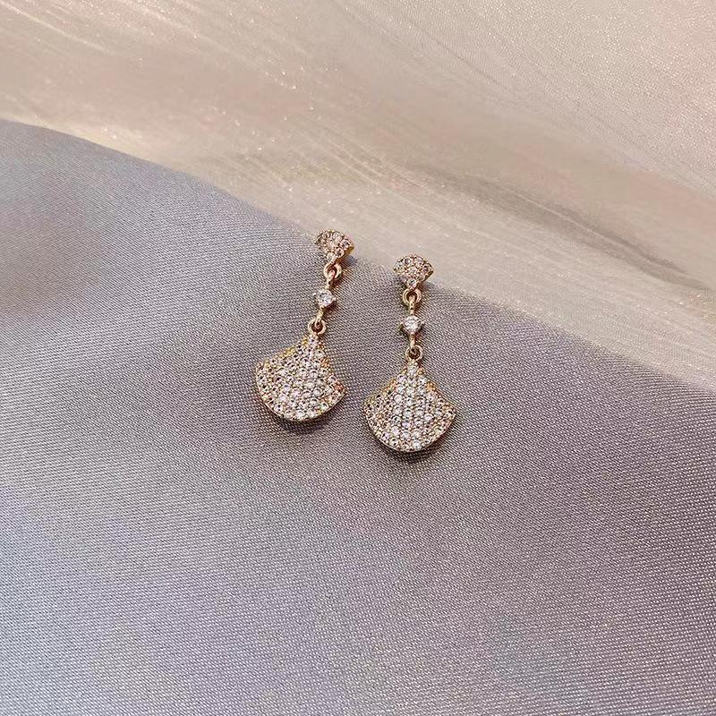 2023新型韓国扇形イヤリング満ドリル気質ロングイヤリング潮小衆s925銀針耳飾り