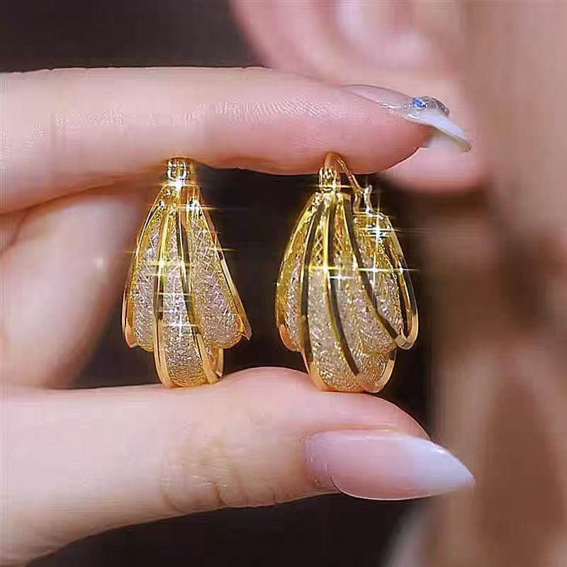 高級感のあるファッションの透かし彫りの網状の輪の耳のボタンの小さい大衆のデザイン感の気質はイヤリングを誇張します。