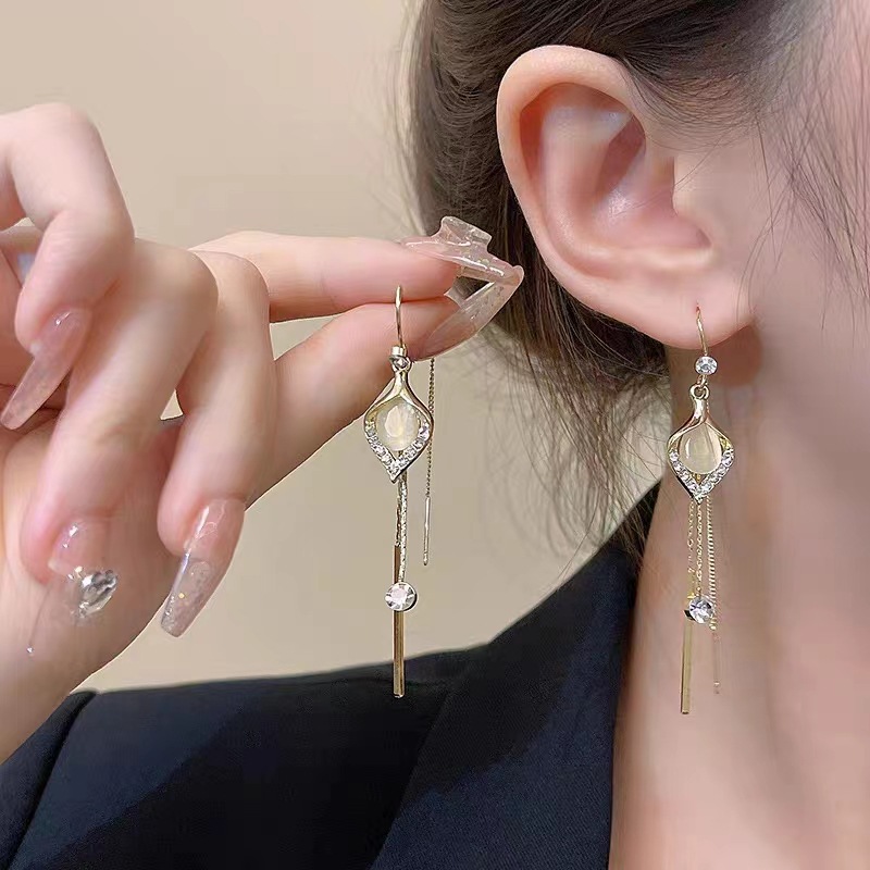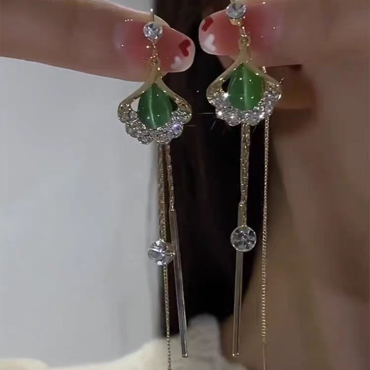 2023年の新型のフリンジの耳のイヤリングの気質の猫の目の石のイヤリングの天使の目の超仙の百合の長いタイプの耳飾り