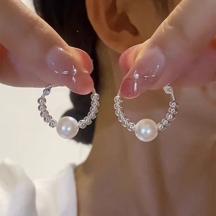 軽豪華真珠砕銀輪イヤリング925銀針高級感気質耳輪耳元ボタン顔痩せ耳飾り