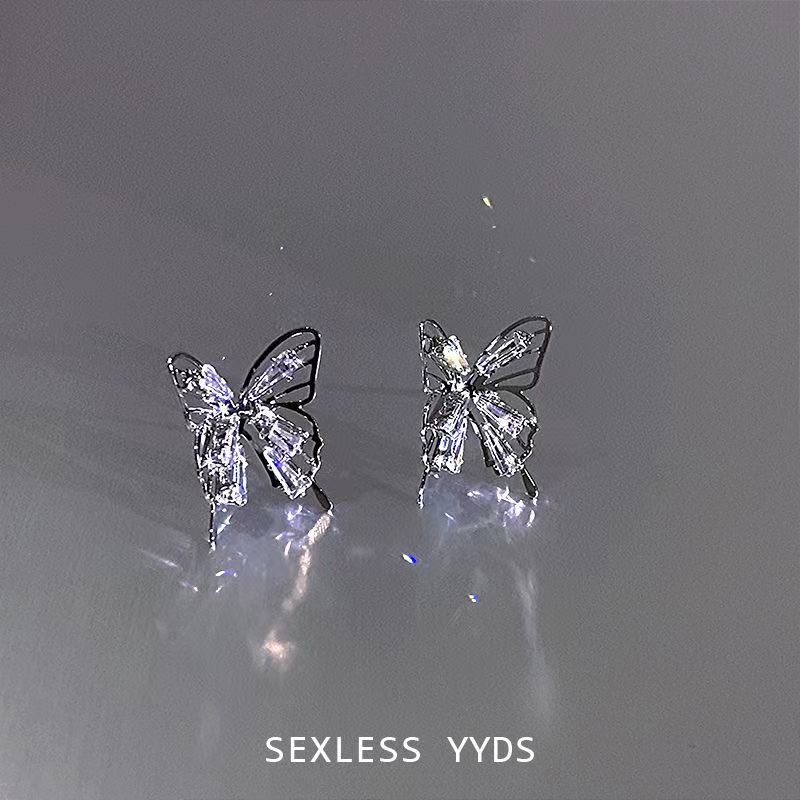 透かし彫りの水晶の蝶のピアスの女性の高級感の小さい大衆の設計のイヤリングの2023年の新型の爆発的な耳飾りの名媛