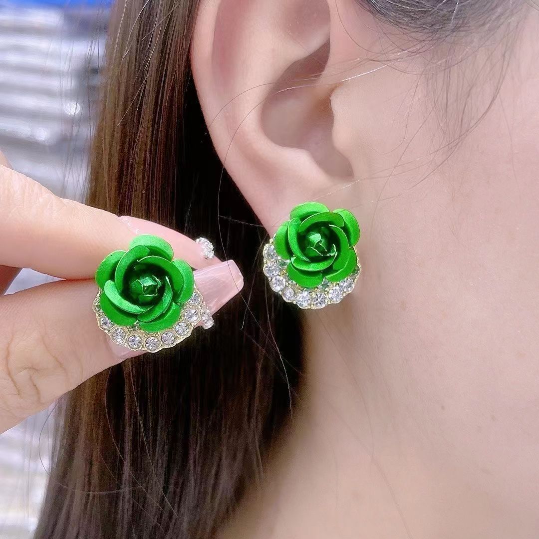 バラのイヤリングの女性の短い大きい花のイヤリングの2023年の新型の気質はショートヘアのイヤリングのイヤリングのアクセサリーを合わせます。