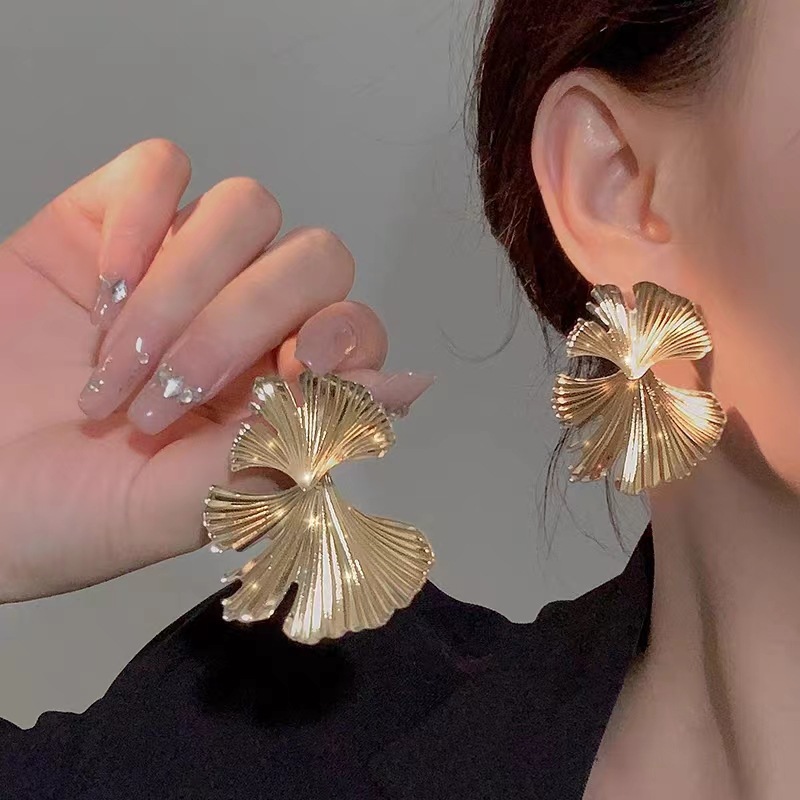 ネット赤誇張個性イヤリング2023新型爆発金イチョウ葉ピアス高級感気質百合耳飾りイヤリング