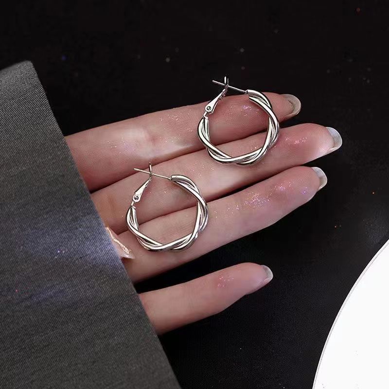 韓国東大門麻花耳輪シンプル銀針イヤリング2023年新作イヤリング高級感女性イヤリング