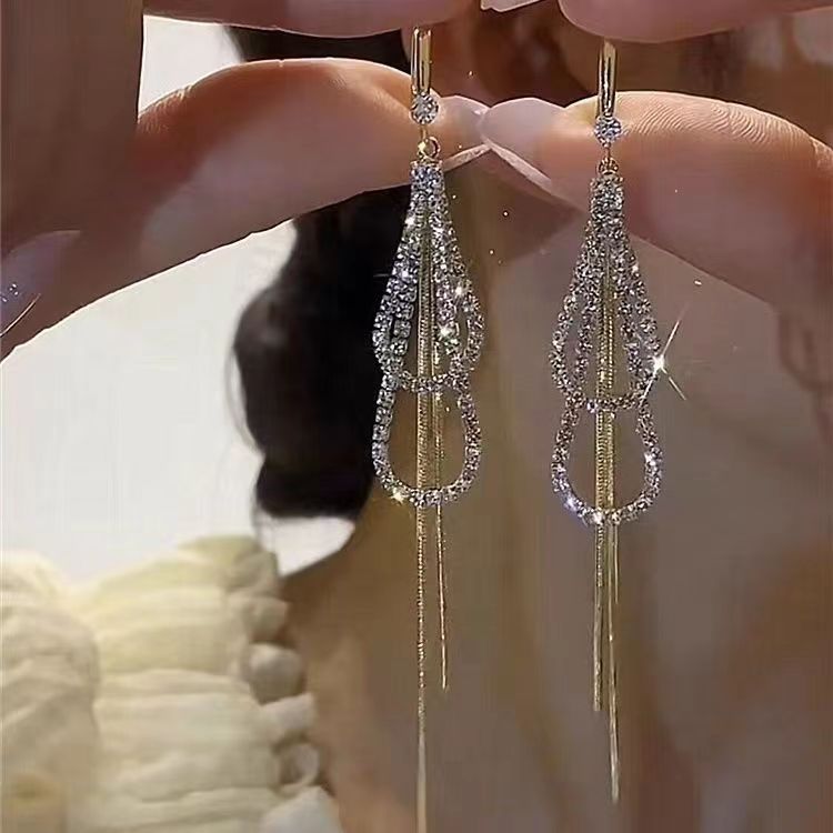 洗練された二重水滴の長いフリンジイヤリング気質ファッションイヤリングの大衆デザインは高級感があり、顔がやせている耳飾りを見せている