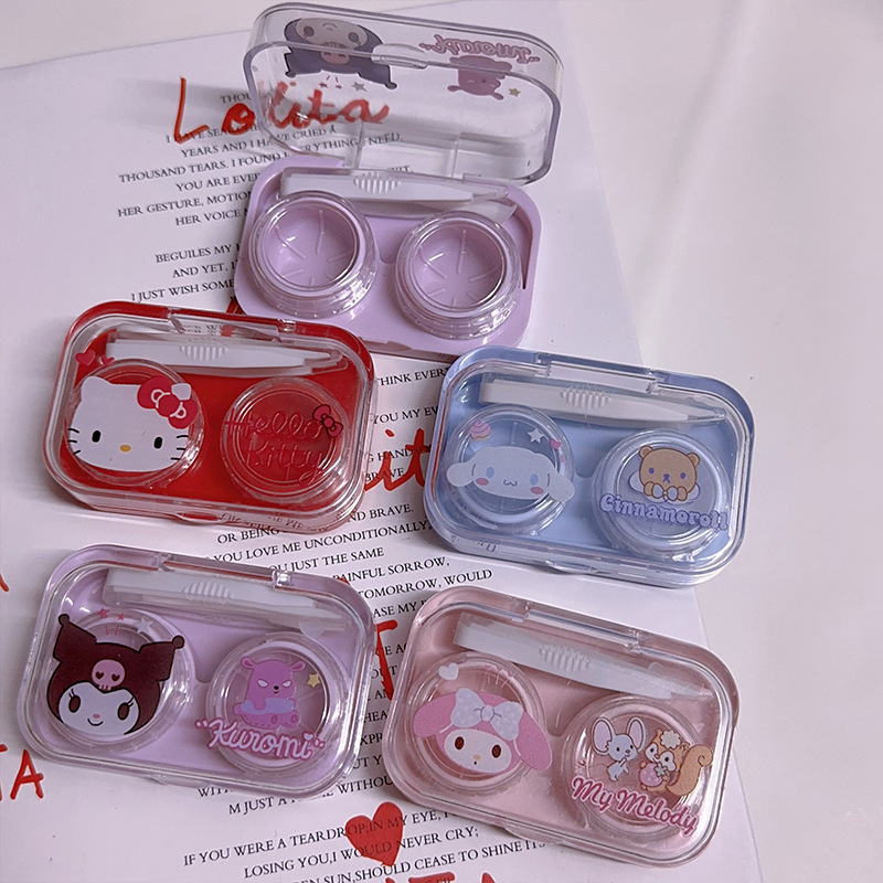 新しいサンリオのかわいいコンタクトレンズケース、持ち運び可能、コンパクト、軽量、ツイストキャップ一体型漏れ防止コンタクトレンズ収納ボックス