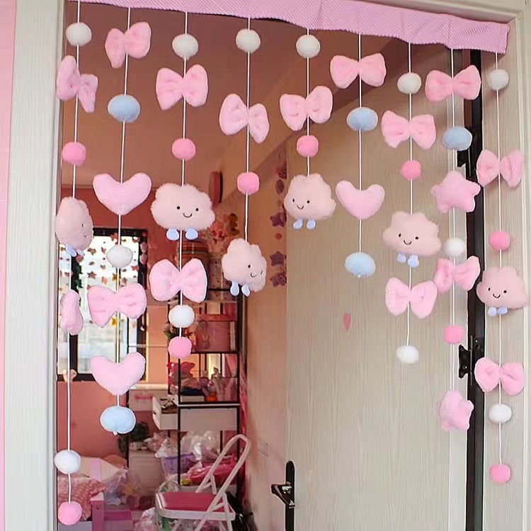 粉雲貝児のれん子供部屋寝室部屋掛けカーテン壁面装飾少女心ins風雲輪創意カーテン