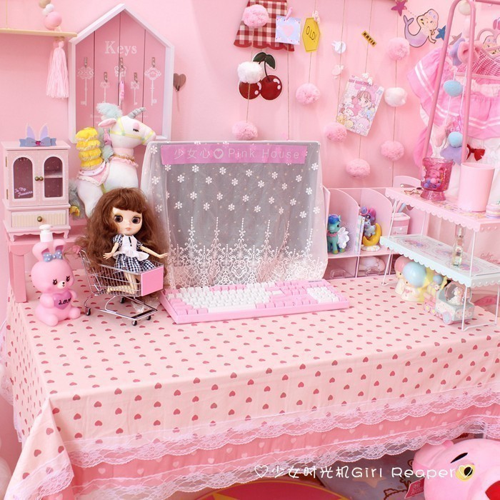 ピンクの甘い愛の波点レーステーブルクロス学生机化粧テーブル装飾少女テーブルクロステーブルクロス