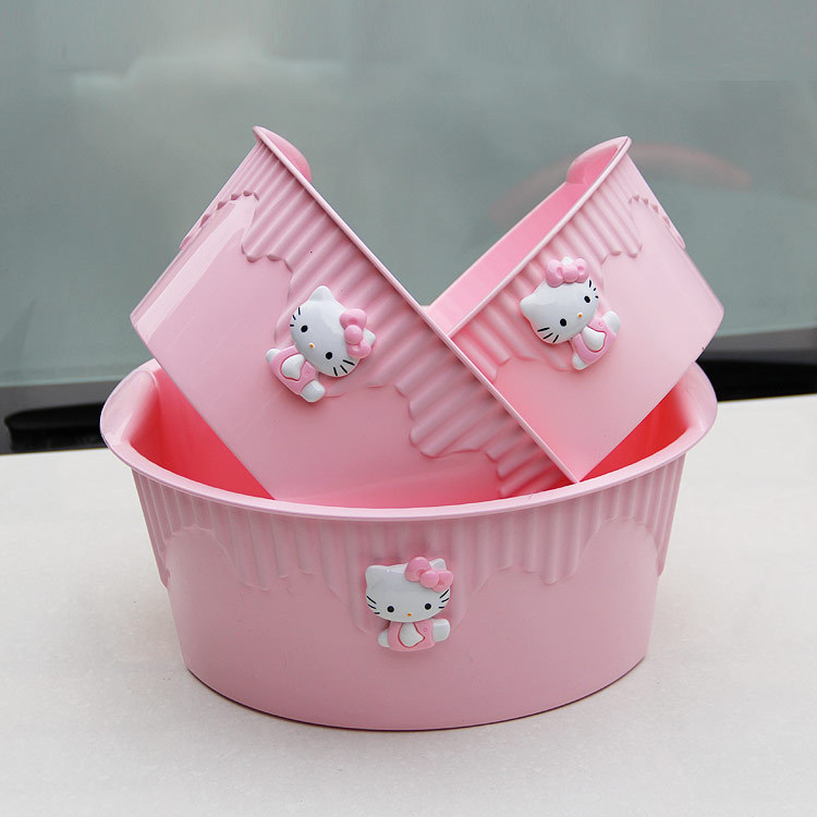 子供用のプラスチックの小さい洗面器の入浴は野菜を洗います。
