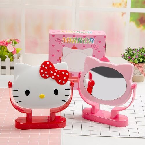 少女心韓国式化粧鏡かわいいアニメktミニデスクトップ回転鏡シンプルなお姫様化粧鏡