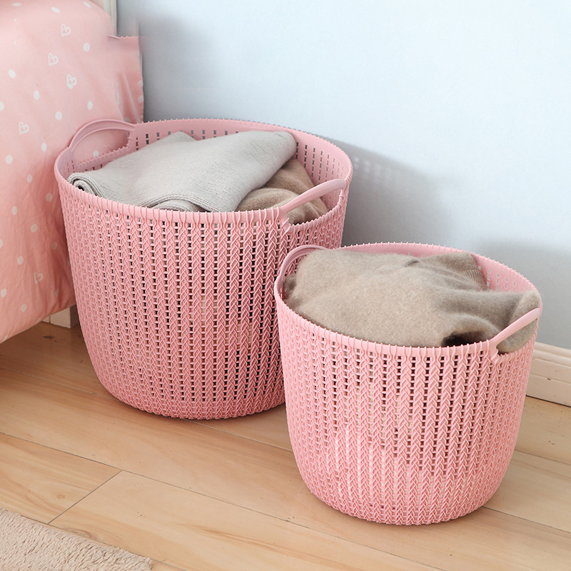 藤編みの日本式の浴室の入浴かごのプラスチックの透かし彫りの収納かごの台所の間食の収納箱の汚い服のかご