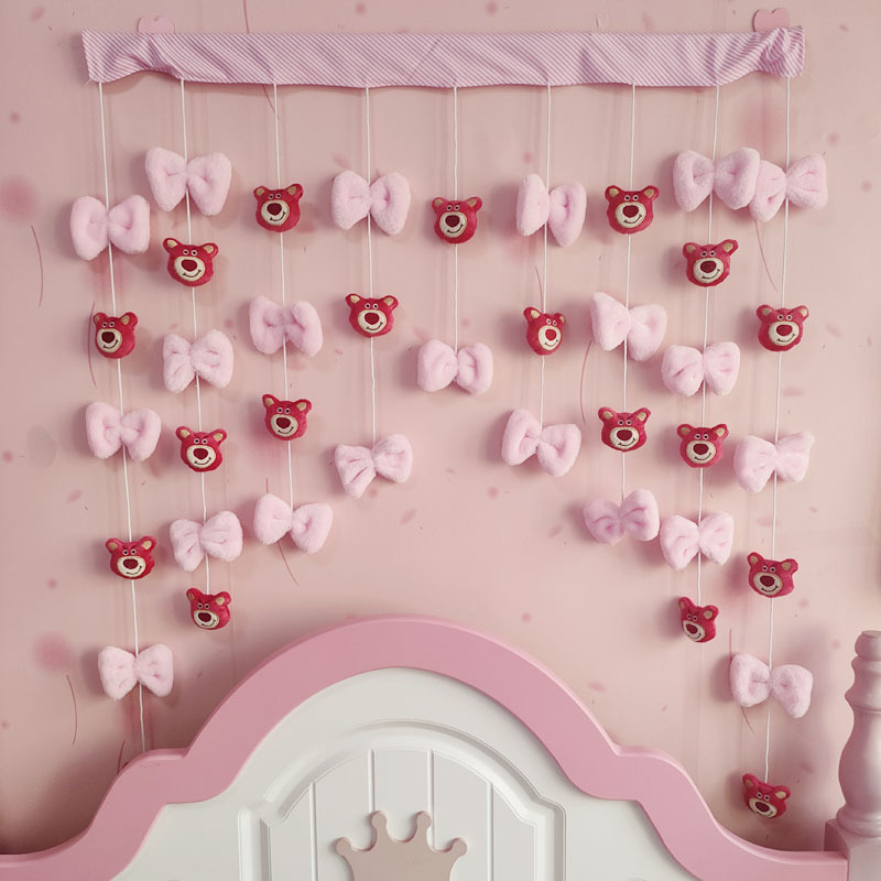 かわいいいちご熊蝶ネクタイのカーテンの家の装飾は子供の部屋のカーテンの寝室の部屋のドアのストラップのカーテンを飾っている