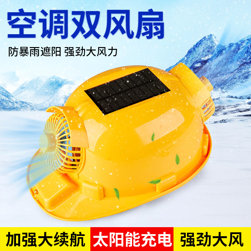 太陽エネルギーの扇風機のヘルメットの通気性の日よけの帽子の工事の帽子は頭の帽子の双の扇風機の充電することができます。