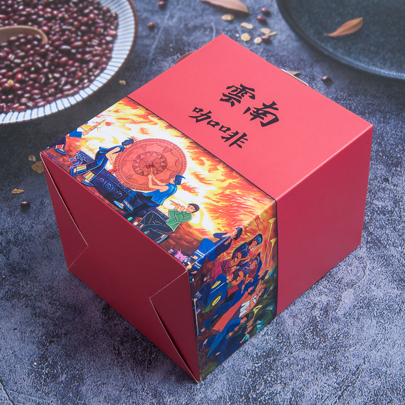 新しい赤い雲南風情コーヒー包装箱10個入りコーヒー箱コーヒー外箱50個