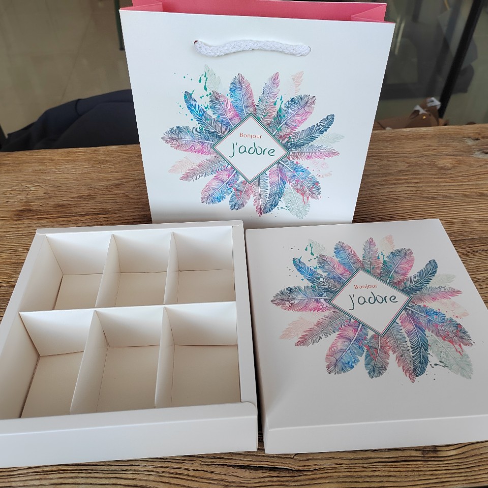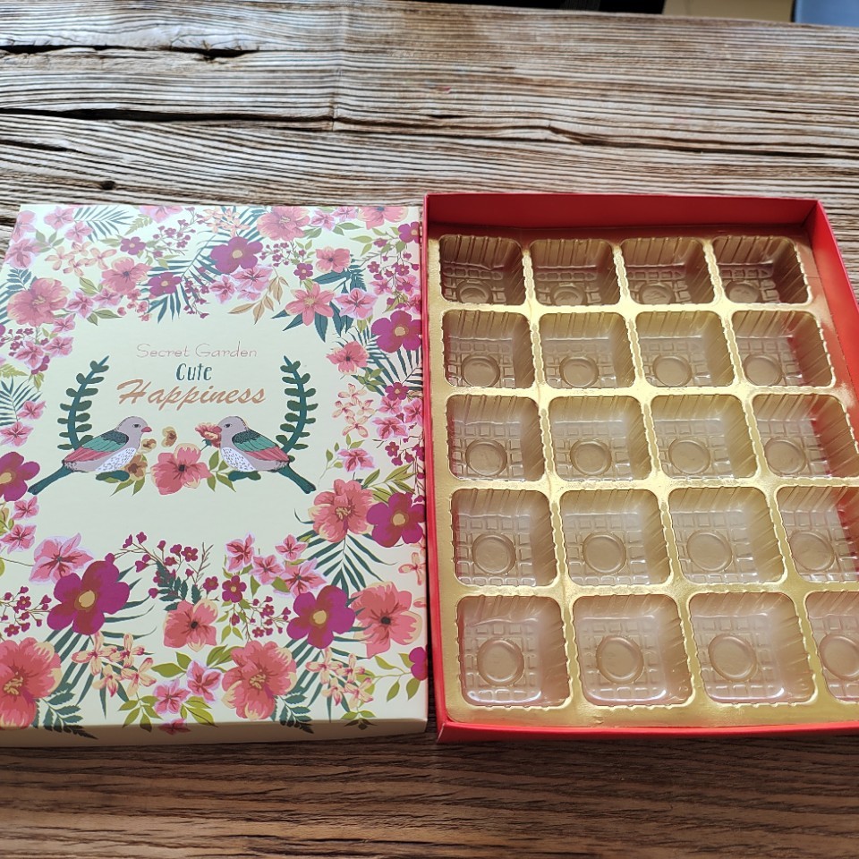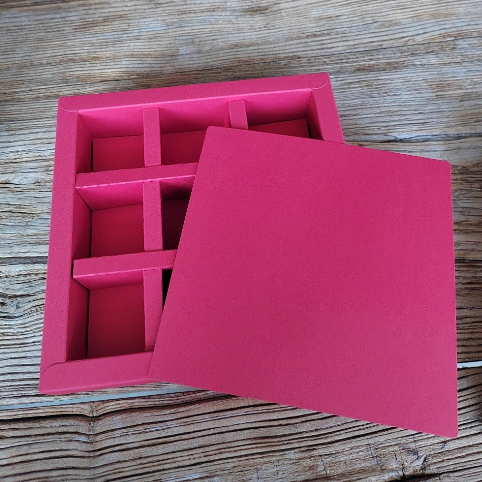 クリスマスのバレンタインデーの赤いカードの9粒のチョコレートの箱の星空のチョコレートの箱の生のチョコレートの箱