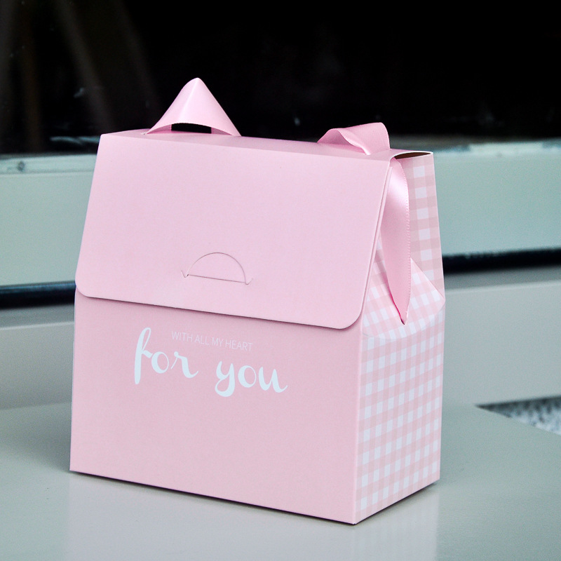 バレンタインギフト包装袋オリジナル可爱いピンク格子子供诞生日ギフトバッグ手提げ袋お土产