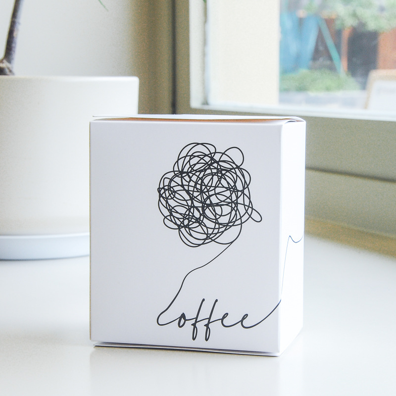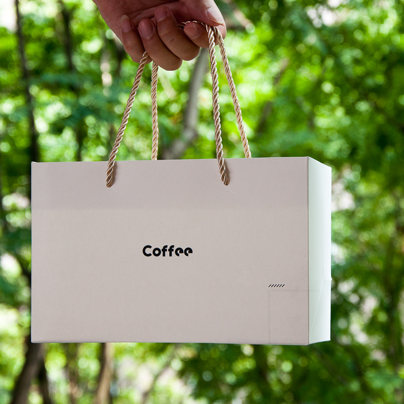 白いシンプルでフレッシュなコーヒーケースの手提げ袋には、10包装のコーヒーケースが2箱入っています