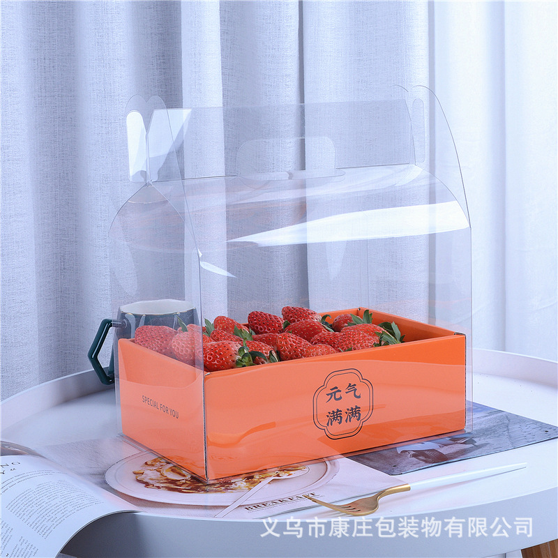 元気いっぱい二重段ボール箱透明可視いちご手提げ箱車センチ果物包装礼箱