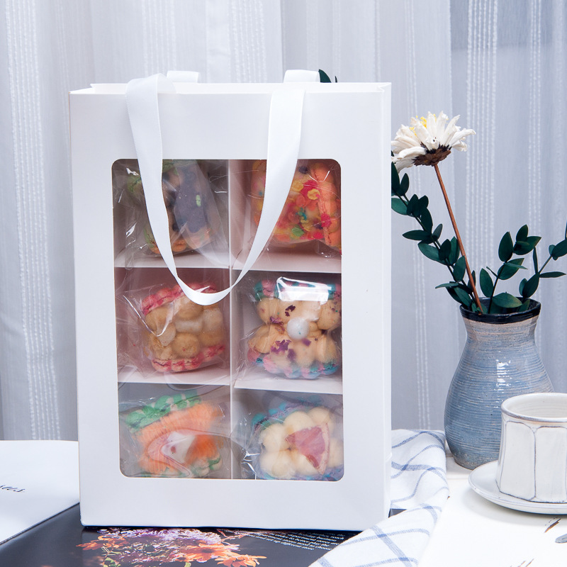 白い窓の4粒のマカロンの包装箱の雪のショートニングの箱のクッキーのビスケットの箱の牛の圧延の砂糖の果物の包装箱