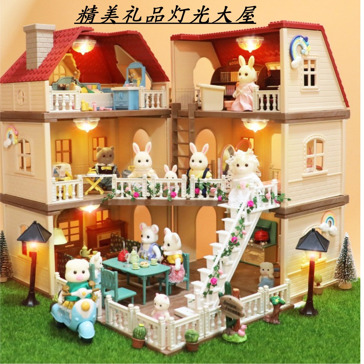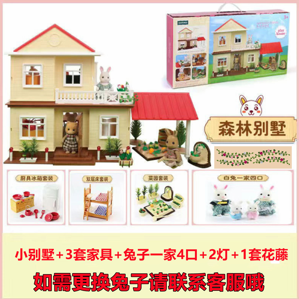 子供の森家族ライトハウス動物の家ミニウサギ女の子ごっこ遊び別荘モデルセットおもちゃ