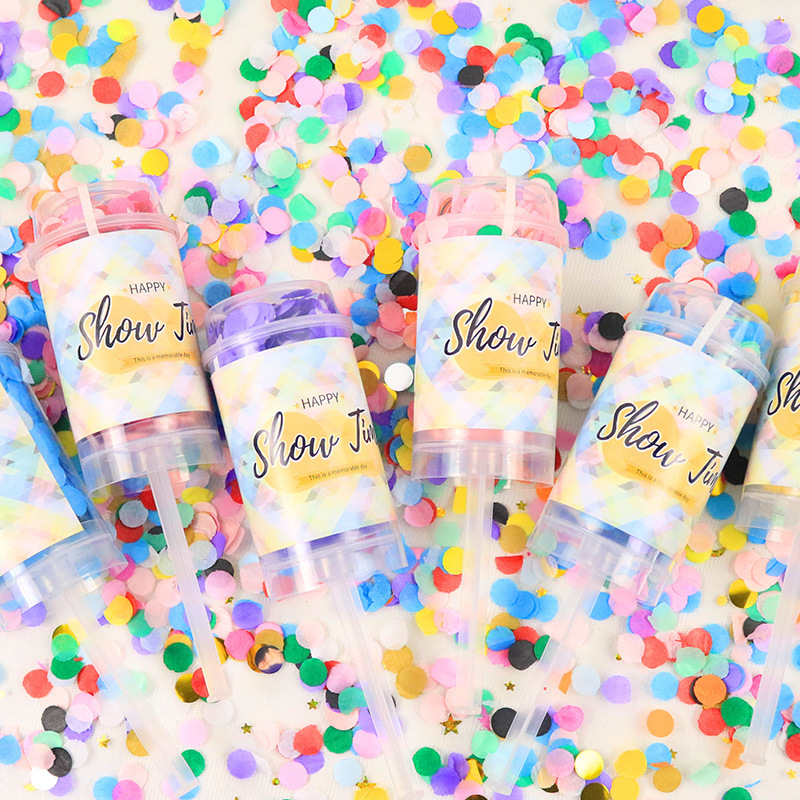 新商品推し楽礼花色紙屑噴花筒結婚式誕生日パーティー雰囲気配置手持ちミニ推筒