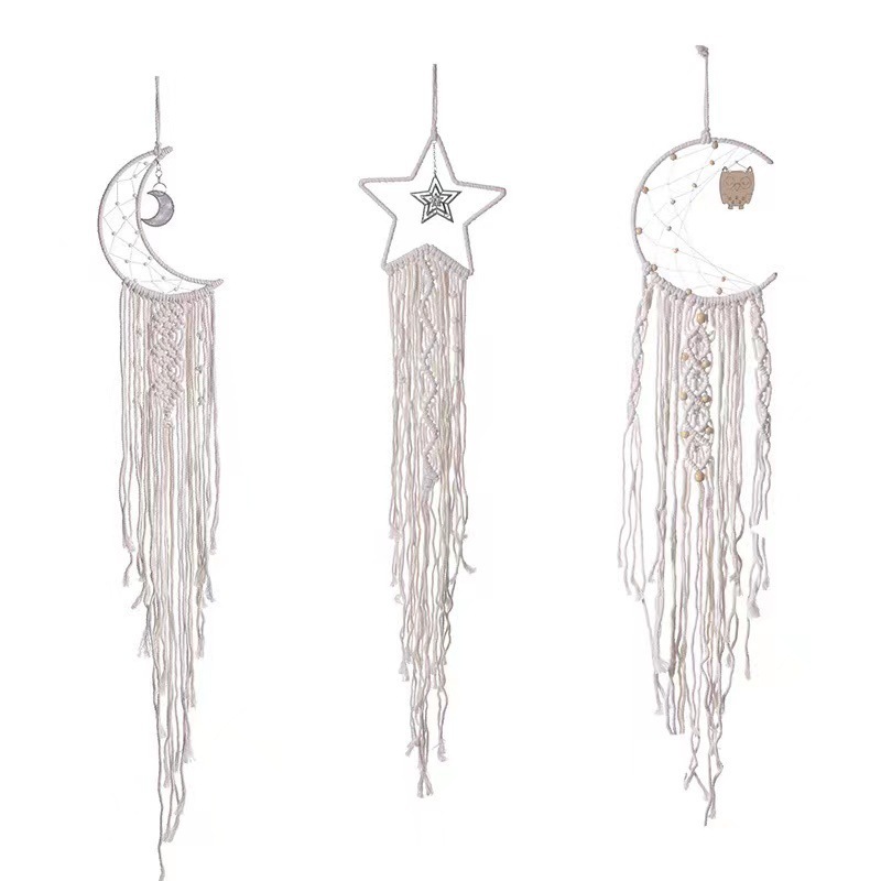 北欧の編みのタペストリー星の月の装飾は夢のネットを捕ります。