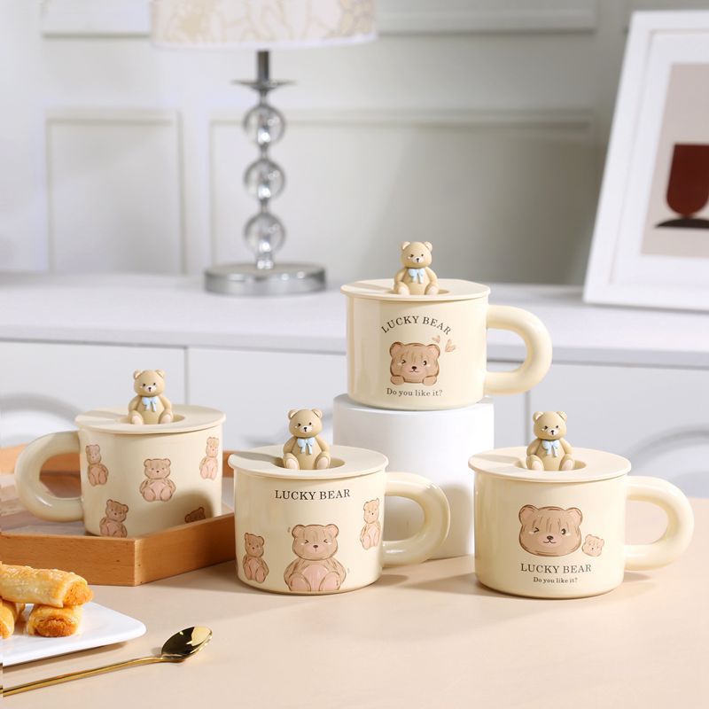 かわいい朝食カップ女子家庭用マグカップ蓋付きスプーンカップルコーヒーカップオフィスオート麦陶磁器カップ