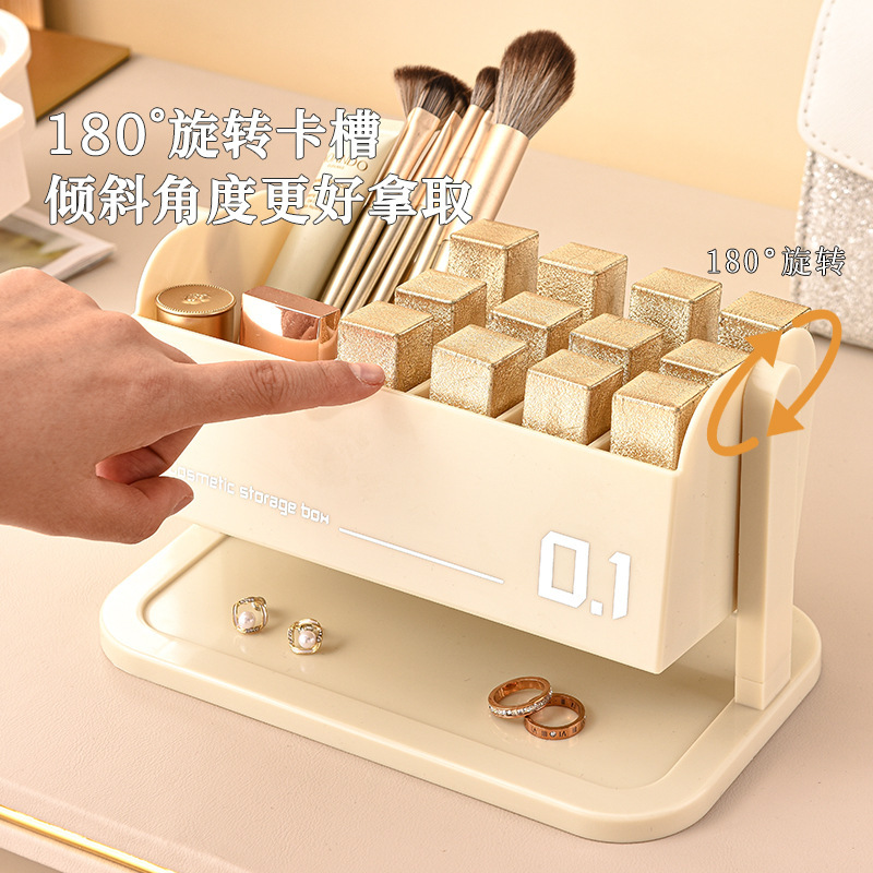 回転化粧ブラシ収納筒化粧台筆筒口紅棚防塵分格デスクトップ化粧品収納ケース