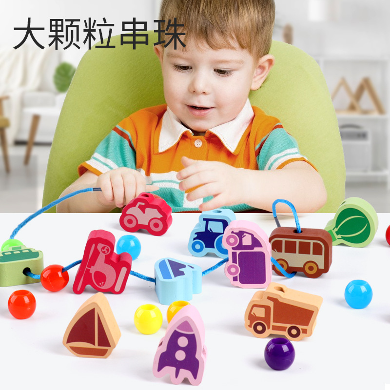 益智早教玩具数珠子縄玩具指柔軟訓練人物動物果物交通認知