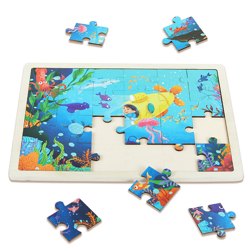 マルチテーマ深海森林ジュラ紀動物宇宙木質パズル子供赤ちゃん早教知育玩具