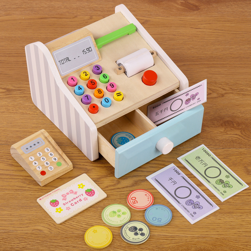 木製のままごとはお金を払ってお金を数えます。レジの益智体験店はレジのおもちゃ幼稚園を演じます。