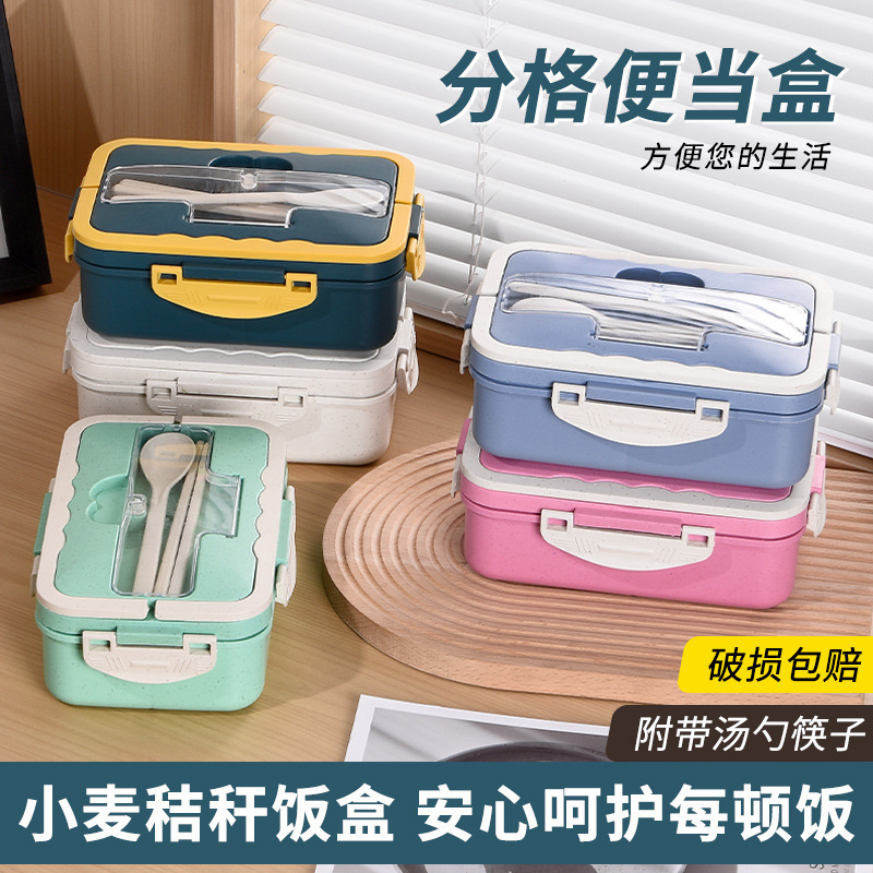 和風小麦わら断熱弁当箱、電子レンジ対応、四角い学生弁当箱、分割プラスチック弁当箱
