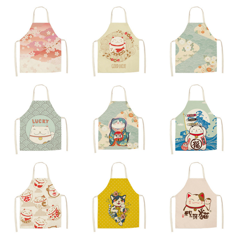 国境を越えた新しい漫画かわいい猫綿とリネンのエプロン防水性と耐油性の家庭用キッチンスモックメーカー卸売