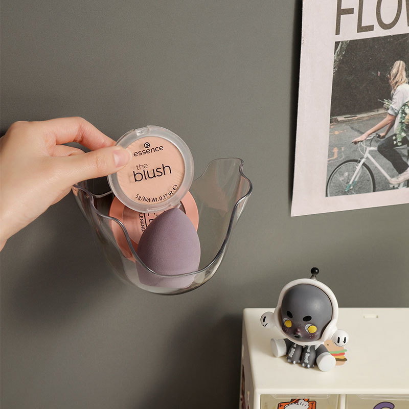 ビューティーエッグ収納ボックス、パウダーパフホルダー、ジュエリー化粧品パンチフリースチールラック、壁掛け化粧スポンジホルダー