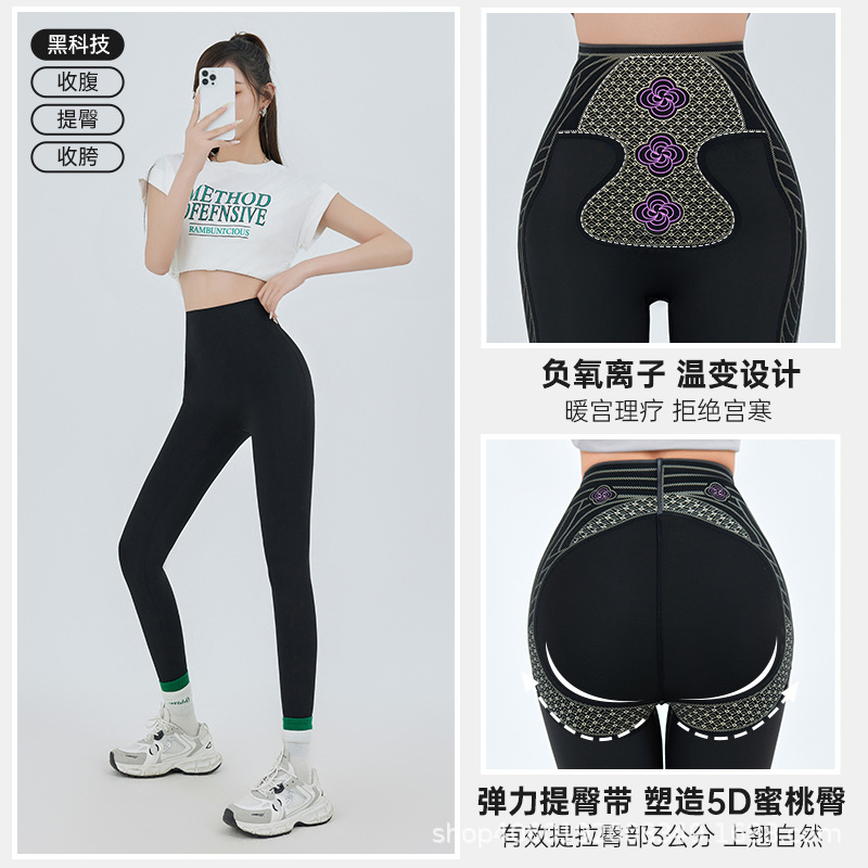 義烏の外に女性の高腰を着て気まずい線がない秋冬のレギンスとベルベットを着て、お尻を上げて腹を収めたバービーのサメのズボンを厚くした