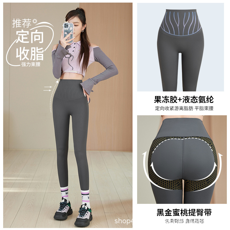 夏用超薄ゼリー状高弾性桃尻女性用ハイウエストヒップアップ着痩せヌード感ランニングフィットネススポーツヨガパンツ