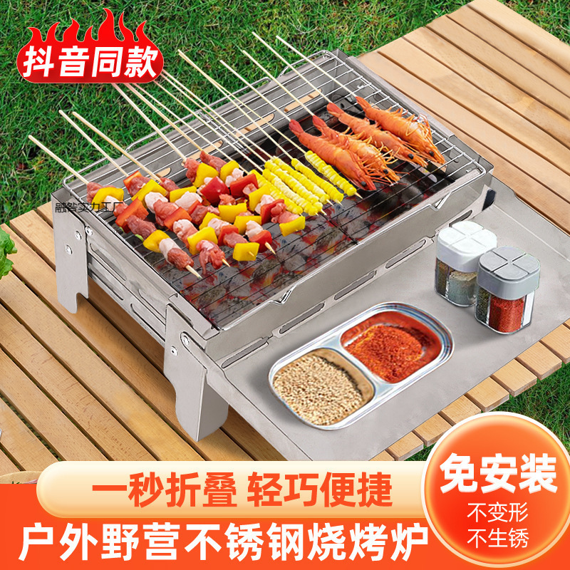 バーベキューグリルファミリー多機能カーボングリル屋外ポータブル折りたたみバーベキューグリルカーボンフィールドバーベキューツールコンプリートセット