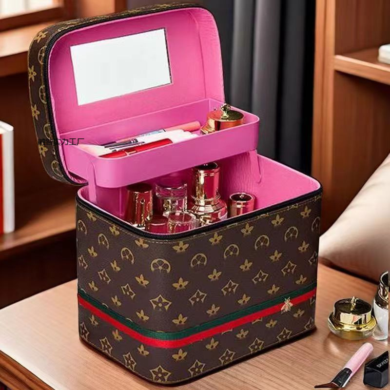 メイクアップ収納バッグ、ハイエンドメイクアップボックス、旅行用ポータブルホーム収納ボックス、ミラー付き立体ハードシェル収納メイクアップバッグ
