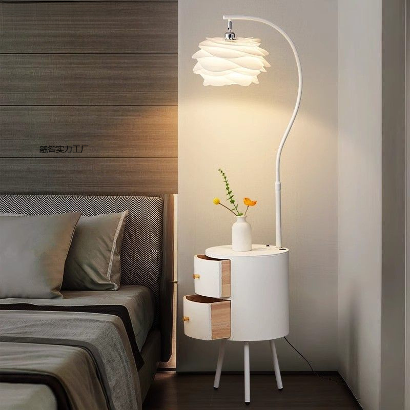 フレンチクリームスタイルフロアランプ寝室リビングルーム新しいソファアートインターネットセレブベッドサイドカウンターランプ収納ラック一体型