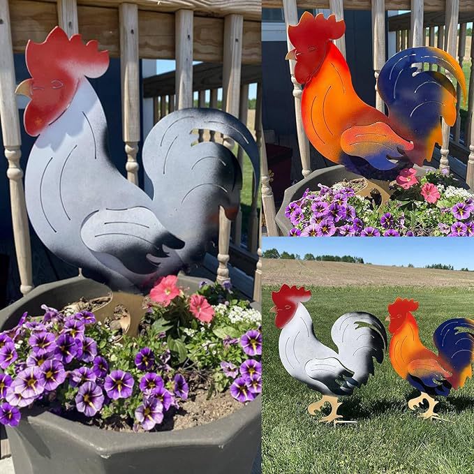 Outdaメタルrooster yard stake屋外金属雄鶏地挿し飾り庭地挿し
