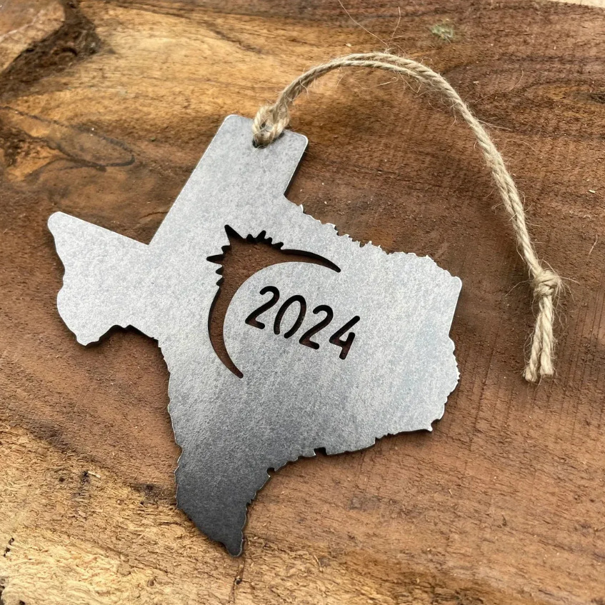 国境を越えた2024日に看板をつけたSolar Eclipse 2024 Ornament木製工芸品