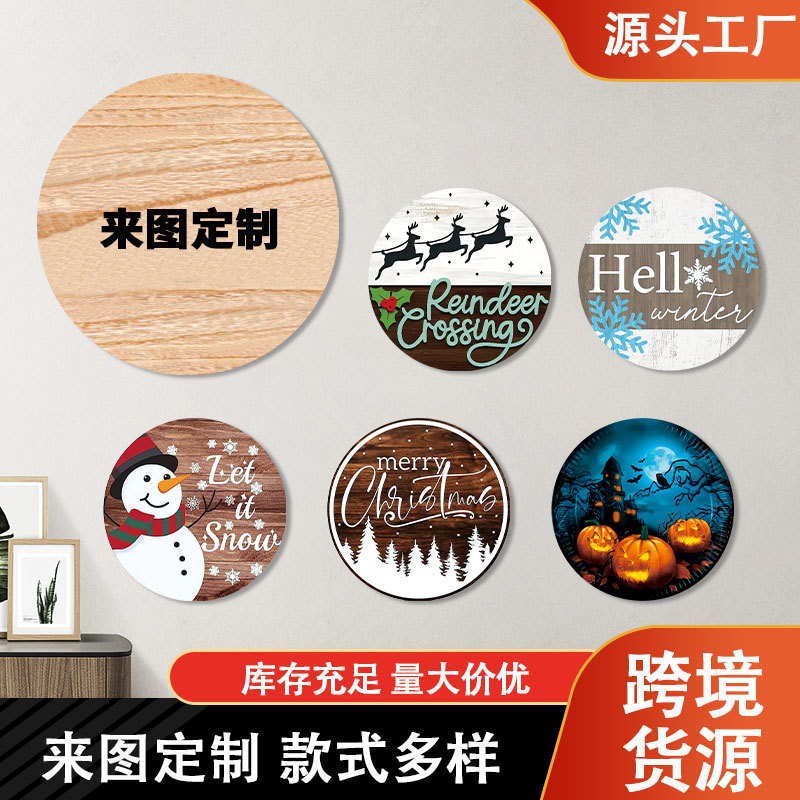 新しいアマゾンの木製品は木の工芸品のアメリカの独立日の家の装飾の丸い型の扉を掛けて板を掛けます。