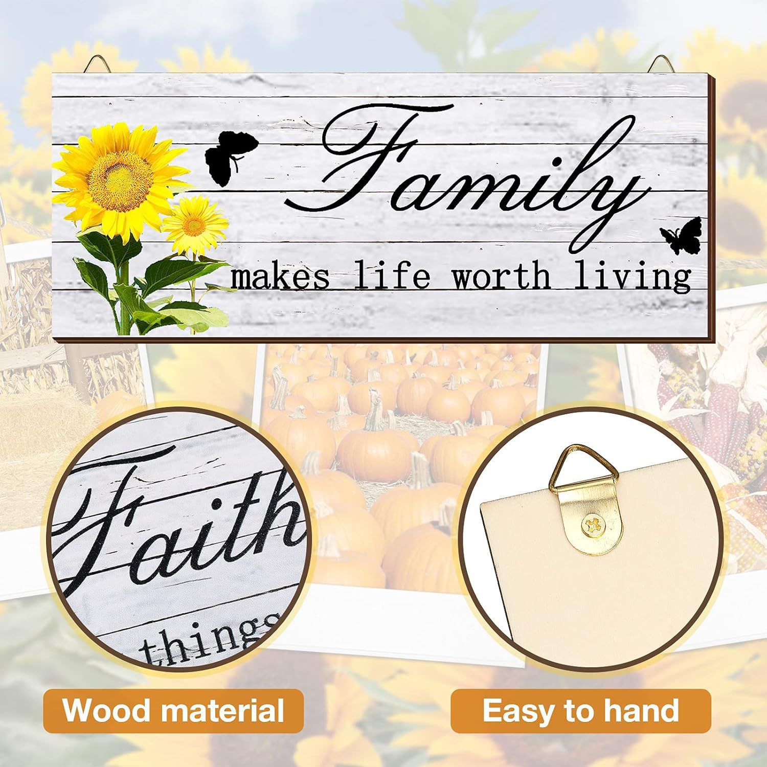 木製の壁に看板を掛けて国境を越えた家の表札の田舎の太陽の花の木の札を飾ってひまわりの田園風の表札を飾ります。