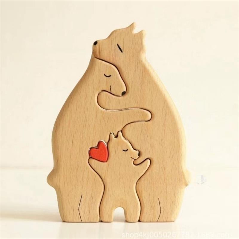 欧米の越境爆発金アマゾン独立駅diy木質パズル母子熊母子象セット木製置物