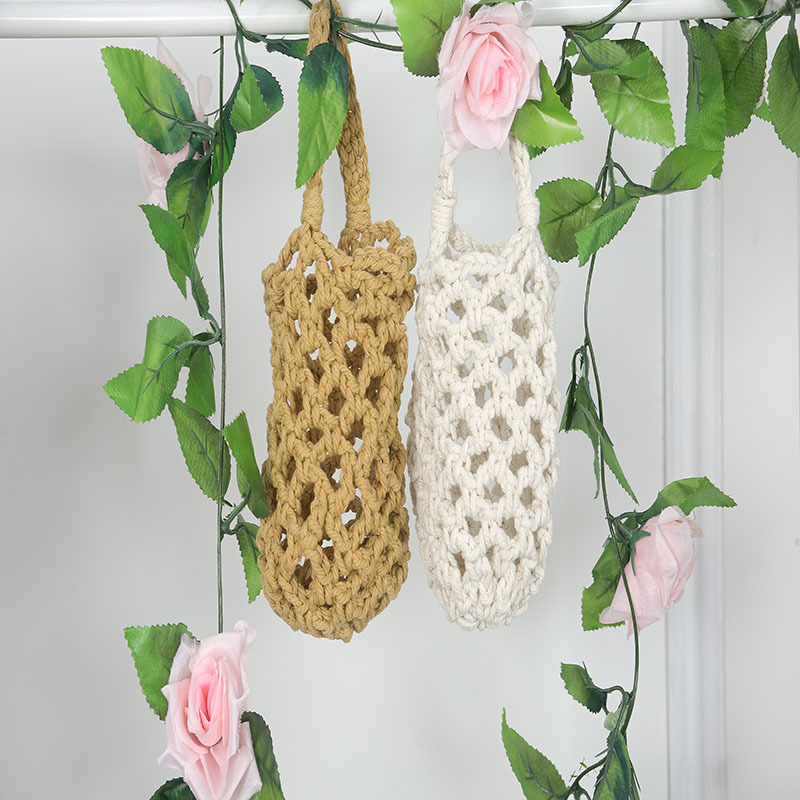 メーカーのかぎ針編みの壁の野菜の果物のかごの収納かごの純粋な手作りの装飾の生け花の花のかごの白い綿の縄の掛け金