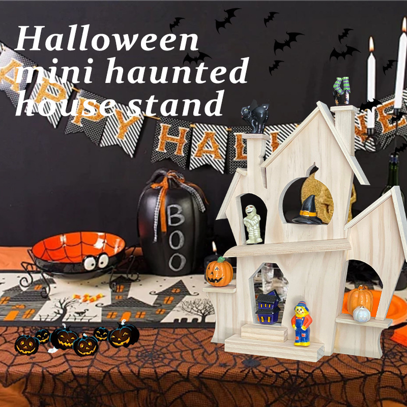 アマゾンの新しいHaunted Houseミニお化け屋敷装飾ハロウィーン装飾品木製工芸品