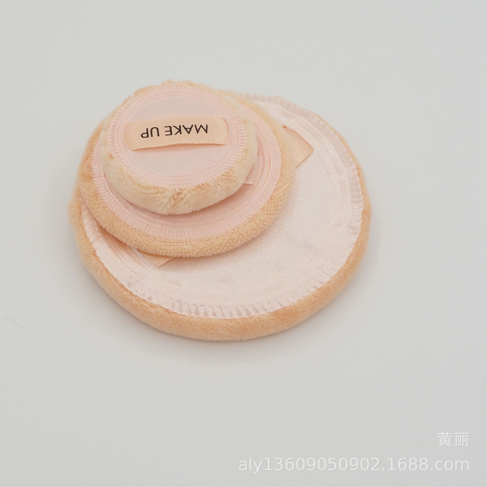 片面綿リボン乾燥粉散粉化粧パフ一面綿一面サテン布は現物を注文できます。