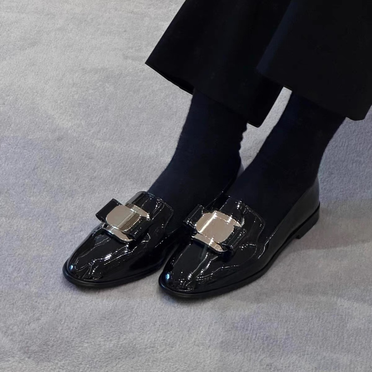 本革版 ~ 英倫風金属蝶結びの靴メアリー珍靴の女性は足を漕いでいます。