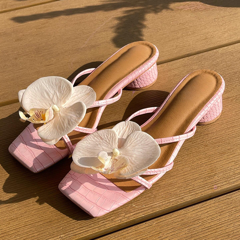 羊の皮のタイの小さい大衆の花のスリッパの女性の金の夏の心地良い角の頭は足の指の涼しさを現して太いです。